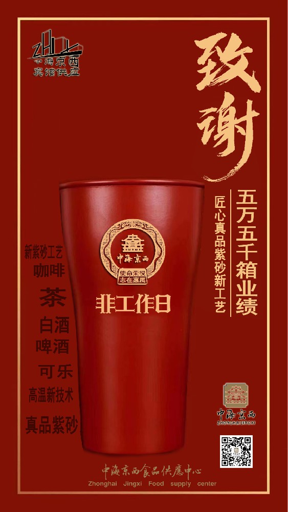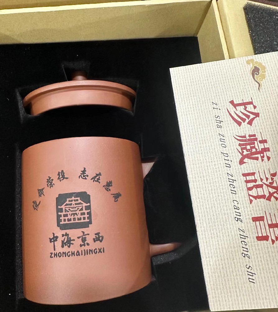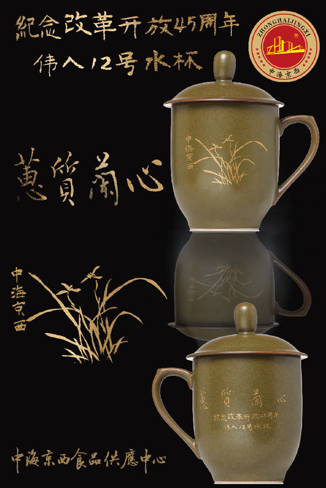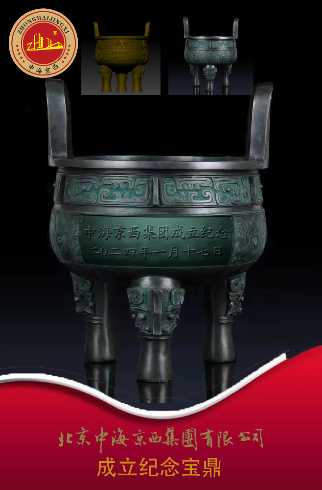 壶身侧面刻绘中海京西LOGO及成立日期,壶盖则是火炬雄鸡鸡冠的形态。整壶体现了中海京西荣役惠属,守正担当盎然创新向前形象。